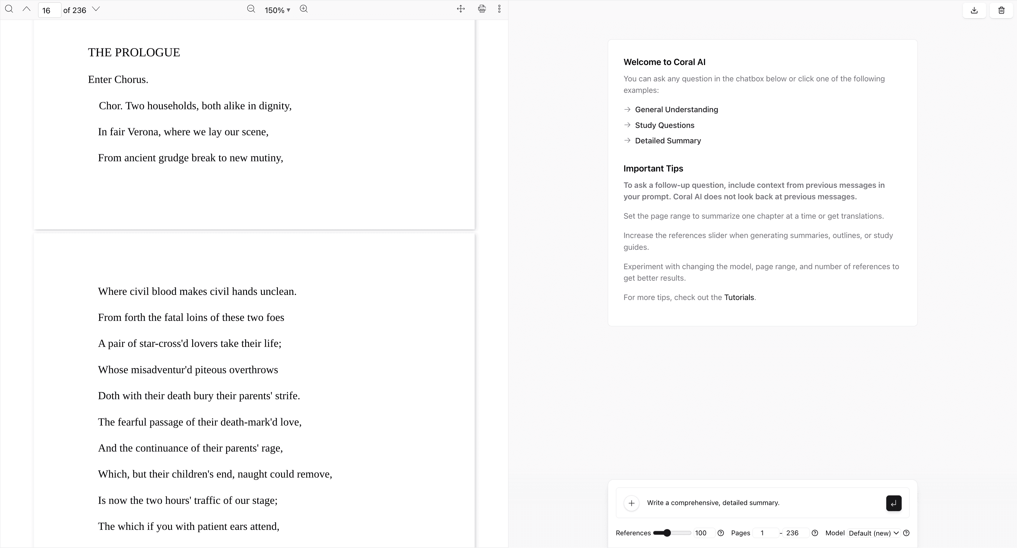 The standout feature of Coral AI is its ability to transform static electronic books into interactive resources you can engage with and learn from. Whether you're preparing for a meeting, studying complex material, or trying to understand a lengthy report, Coral AI simplifies the process. It's like having a knowledgeable assistant who understands all your documents and is always ready to discuss them.