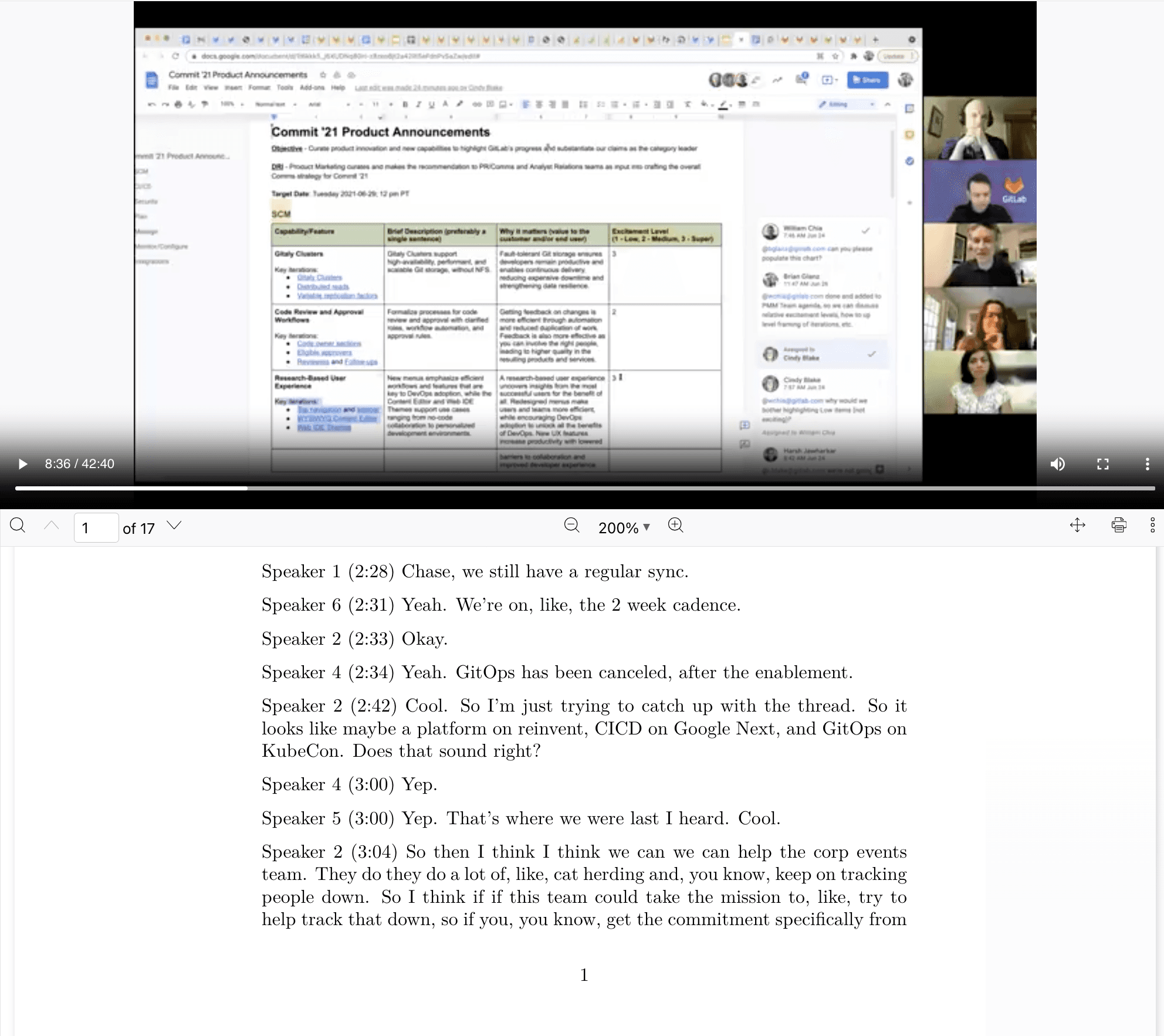 Get responses with page citations from the audio or video file.